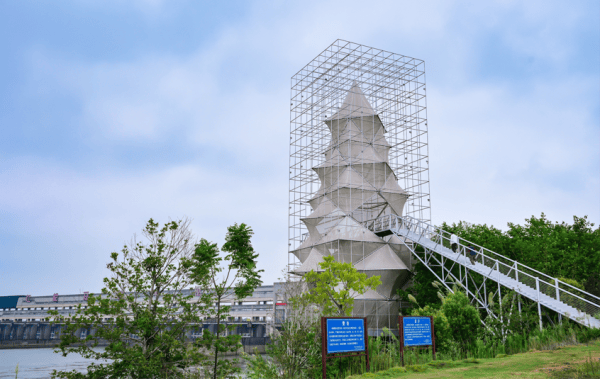 浙江衢州龙游县小南海镇汀塘圩村,艺术让这个普通的小村吸引了大量年轻人前来打卡。图为村庄的瀫石光·艺术生态走廊,艺术品散落在田野、村庄的角落里