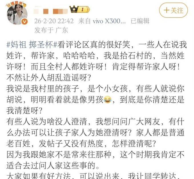 关于之前提到的捐赠以及许某涵的家庭背景,我们目前还没有确切的证据。但是,关于掷圣杯的传统,我已经见过很多供奉妈祖的人,他们都有掷圣杯的传统。至今,我还没有在网络上看到湛江什十村前几次妈祖巡游掷圣杯的视频。这个疑问可能只有当地的村民能够解答,湛江周边的村民也可以提供一些解释。欢迎在评论区留下您的看法。