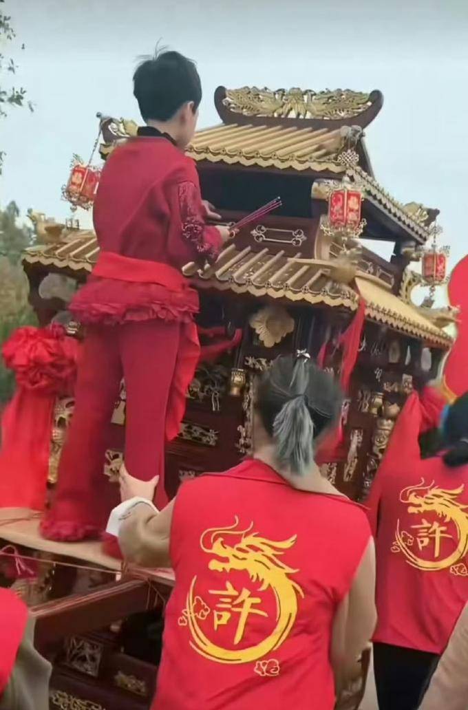 关于这幅图片,部分观众或许也曾观看过原视频。有些人认为图片中的男孩是今天的许某涵。但小编注意到前面几位工作人员所穿的服装并不合适,因为湛江这次的妈祖巡游都是用红色马甲进行的,所以我认为这个视频可能来自其他地方。